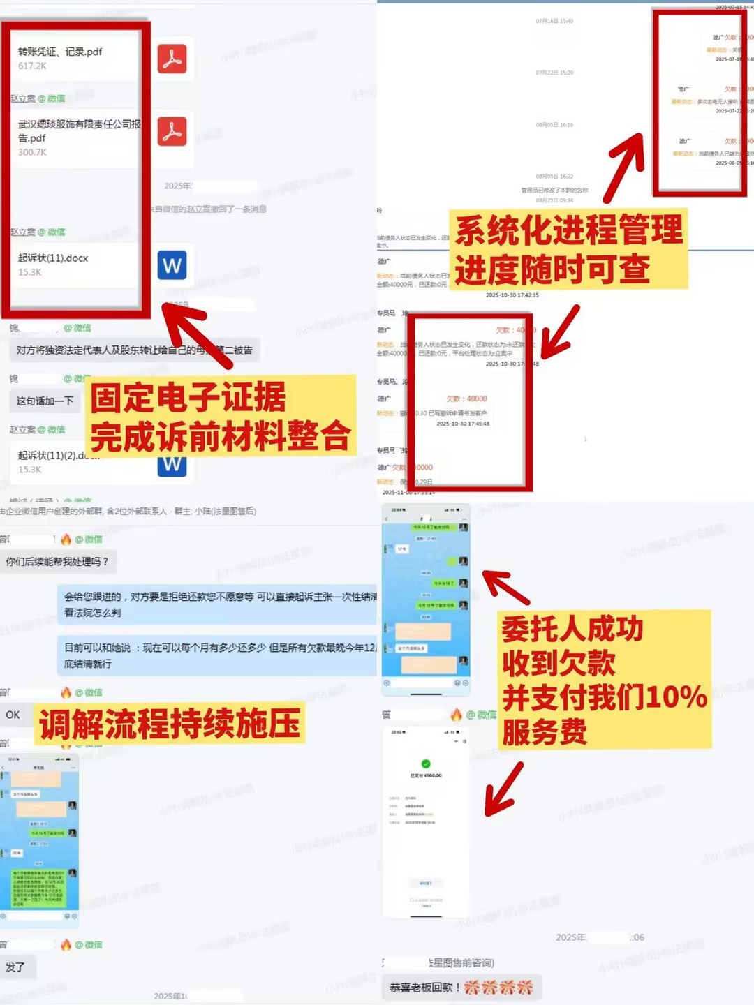 法星图专业团队高度重视王总的委托,从电子证据固定、材料整合到进程同步,全程透明高效,让客户随时掌握案件动态,消除信息焦虑,最终成功助力王总追回欠款。